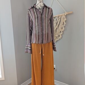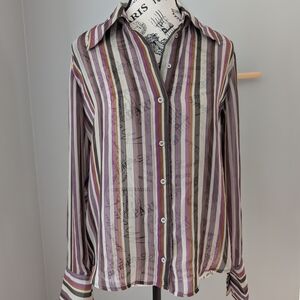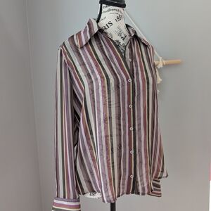 Vintage Suzy Shier Purple and Cream Striped Button Down Shirt Y2K 70s Style