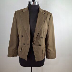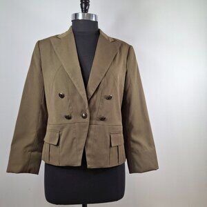Vintage Suzy Shier XL Cropped Military Jacket with Peplum Olive Green Lined