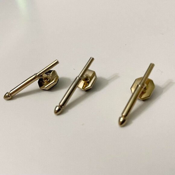 These are pre-owned and in used condition. This comes with one pair of cufflinks and 3 shirt studs. There is wear to them from use. Please see all photos for exact item.