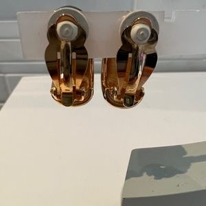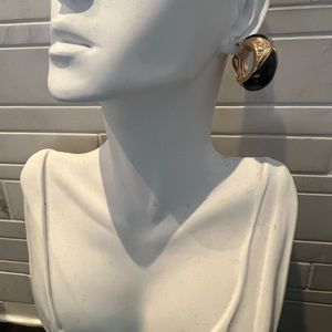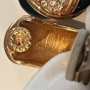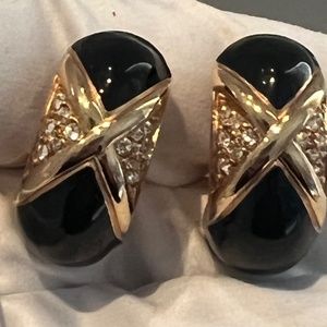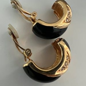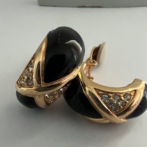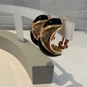 Vintage Black and gold-tone Swarovski brand with brilliant white crystals, gold plated clip on earrings . Marked on the back with