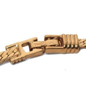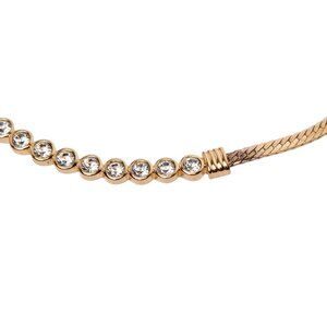 Vintage Swarovski Crystal Gold Plated Necklace Collar Choker Flat Snake Chain 80s