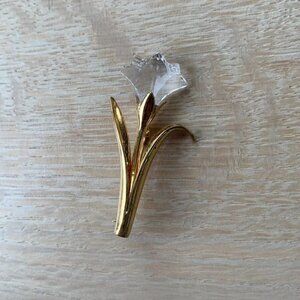 This is a beautiful vintage Swarovski crystal pin. It's a floral boutonniere brooch featuring a Swarovski crystal lily flower.