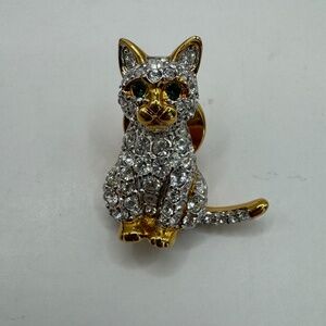 Vintage Swarovski pave crystal cat pin with green eyes.
