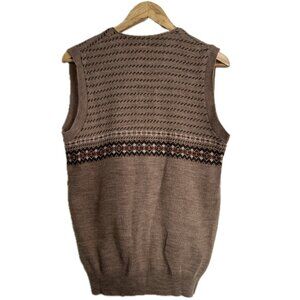 Vintage Sweater Vest Men Brown Tan Medium FairIsle Cardigan 70s Grandpa Retro
