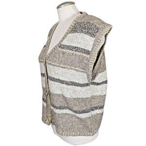 Vintage Sweater Vest Womens Large Beige Wool Blend Faux Horn Toggle Grandmacore
