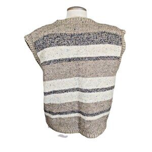 This vintage sweater vest for women is a unique addition to your wardrobe. The beige color and boho look make it perfect for casual occasions. The faux horn toggle buttons add a touch of grandma-core to the design. Made from a wool blend, this sweater vest is perfect for the 1990s decade and is an original piece. It is sized as a women's large and is made in Vietnam. You'll love the cozy and warm feeling it provides. Perfect for vintage lovers, this sweater vest is a must-have for your collection.