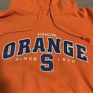 Features classic "Syracuse Orange S - Since 1870" front graphic, front kangaroo pocket, and a cozy fleece lining. Perfectly worn-in for that authentic vintage look — including some light distressing near the shoulders that adds to its charm.