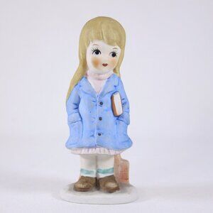 Vintage TAIWAN girl with book figurine, Lefton style decorative nursery decor