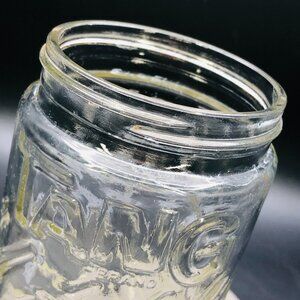 The glass jar has no chips, no cracks. Minimal scuffing utensil marks from stirring the mix.