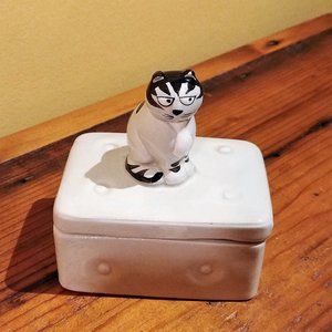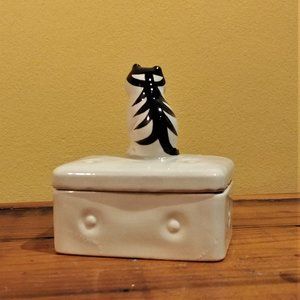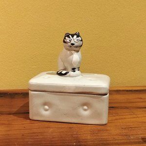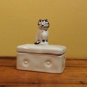 Vintage TCM Takahashi Tom Cat Figurine Trinket Box - Hand Painted Ceramic B&W