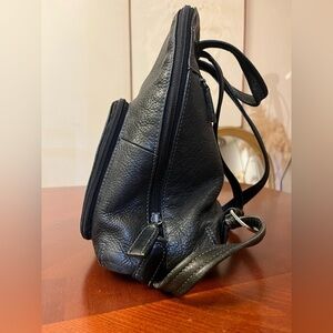 Vintage TIGNANELLO Genuine Leather Black Backpack with roomy front pocket. Silver hardware. Two slot pockets on the inside and one zipper pocket.