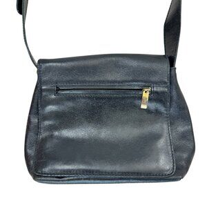 black leather shoulder bag, vintage crossbody purse, Toledano handbag, 90s minimalist style, genuine leather purse, women’s everyday bag, adjustable strap crossbody, gold buckle detail purse, structured leather handbag, vintage leather bag