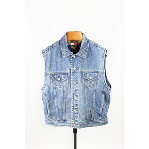 Vintage TOMMY HILFIGER 100% Cotton Star Print Lined Denim Vest, Size XL