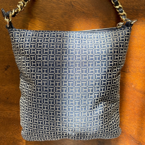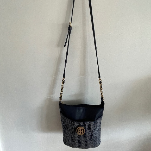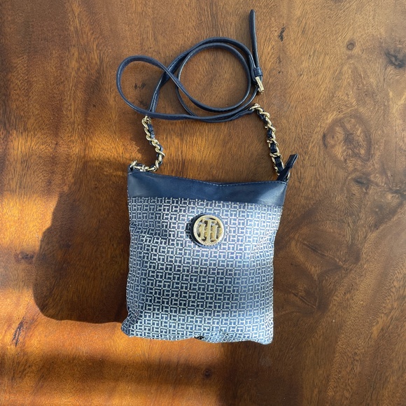 Authentic vintage Tommy Hilfiger crossbody or handbag. Navy and white with gold accents/hardware.