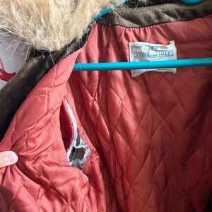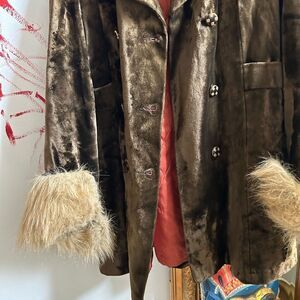 Vintage TRAIL TRACER Women`s brown Velvet FAUX FUR Collar COAT BOHO USA