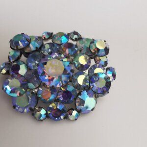 Vintage TRIAD Multi Level Rhinestone Brooch- Blue Aurora