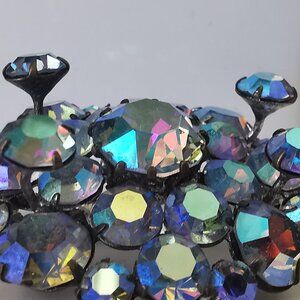 Beautiful blue tone Aurora Borealis rhinestones in varying sized. Centre largest stone as seen.