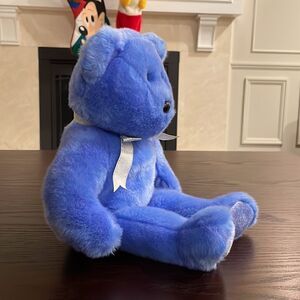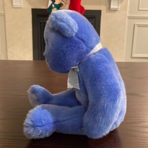 Vintage TY Beanie Buddy Bear "Clubby 2" 1999 Blue Bear with Silver Bow EUC 14”