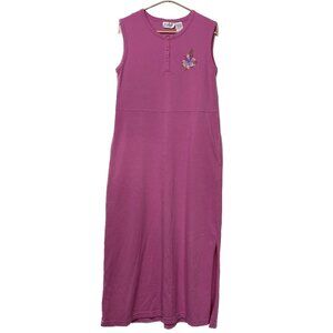 Vintage Tabi Maxi Dress Women M Pink Tank Embroidered Floral Pockets Cottagecore