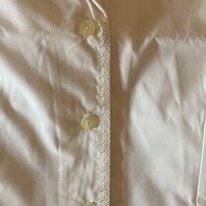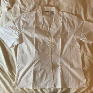 Vintage Tabi button down short sleeve shirt with delicate embroidered pattern white on white on collar and down the front button line.