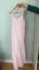 DESCRIPTION: This Vintage Nightgown is Pretty in Pink, Nylon- soft & lightweight. Long, Maxi length with mesh and contrasting white lace upper chest that ties and upper back mesh detailing. Sleeveless. Semi sheer.