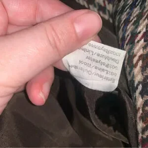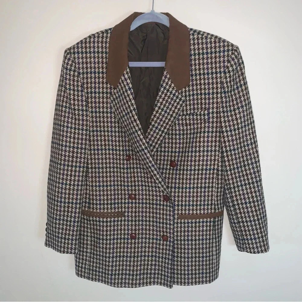 Vintage Tailored Double Breasted Herringbone Blazer Jacket Brown Tan