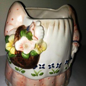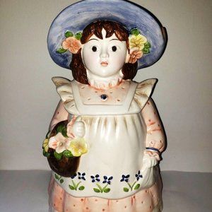 Vintage Takahashi Glass Eyed Girl Cookie Jar Country Doll Flower Basket …