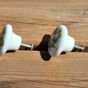 Vintage Takahashi San Francisco Japan Yellow Poppy Round Porcelain Drawer Pulls