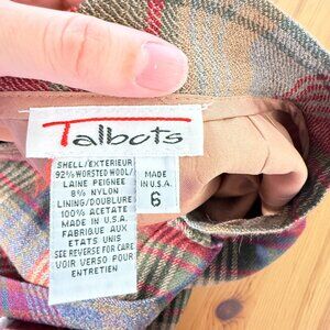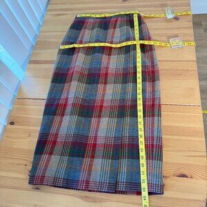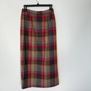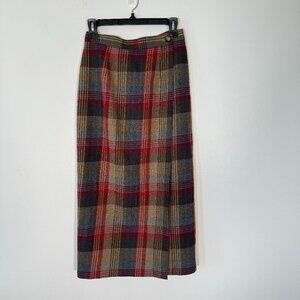 Vintage Talbots 100% Wool Plaid Midi Wrap Skirt Red Grey Librarian Modest 6