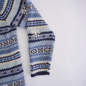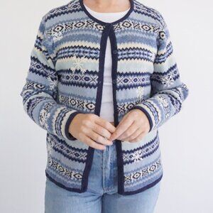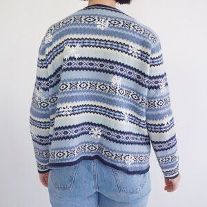 Vintage Talbots Blue White Knit Winter Snowflake Button Up Cardigan Sweater XL