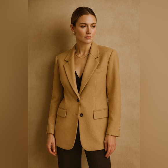 talbots camel hair blazer, vintage italian blazer, quiet luxury jacket, tan wool coat, preppy camel blazer, classic womens blazer, timeless workwear, 100 percent camel hair, minimalist outerwear, fall layering piece, italian made coat, sophisticated neutral style