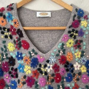 Vintage Talbots Floral Embroidered Sweater Lambswool Preppy Cottagecore Style