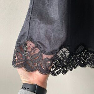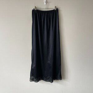Vintage Tall Girl Pull On Lace Hem Elastic Waist Maxi Slip Skirt Black Small