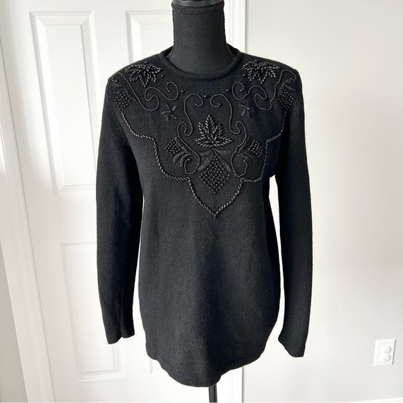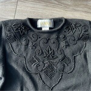 Vintage Tamra Black Wool Angora Blend Beaded Sweater