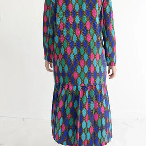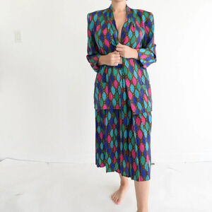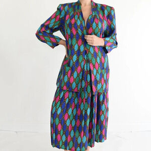 Vintage Tan Jay Multicolour Blouse & Pleated Skirt Two Piece