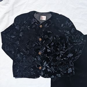 Vintage Tan Jay Velvet Style Set - Velvet Floral Detail + Gold Buttons - Size 14