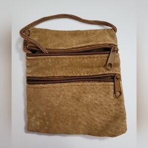 Vintage Tan Suede Zippered Change Purse