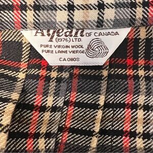 Stylish vintage wool plaid kilt by Aljean in the Royal Stewart Camel colour way tartan. Features 3 button closure detail on the side. One tiny pinhole only visible in close close inspection. Waist is 28 inches, length is 29 1/2 inches.