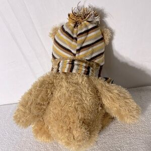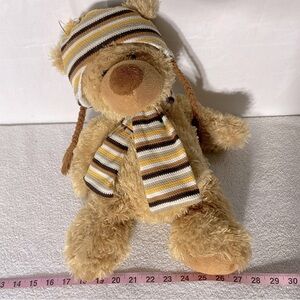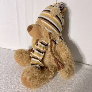 Vintage Tan Teddy Bear Plush Toy Stuffed Animal With Toque And Scarf