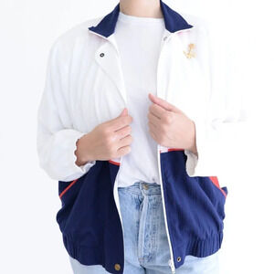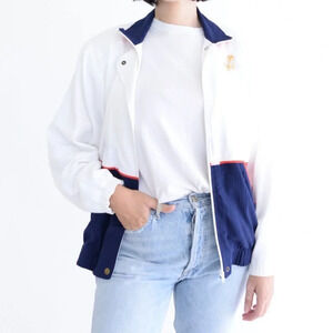 Vintage TanJay Petite Naval Nautical Style White & Navy Windbreaker Jacket XS