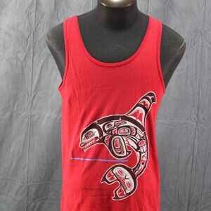 Up for sale is a vintage tank top. It has a red base colour with a large Haida Killer Whale graphic screened on the front. What a great tank top do not miss out on it.
