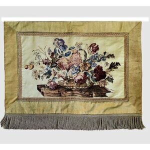 Vintage Tapestry Wall Hanging Gold Velvet Border Tassel Trim Rod Pocket