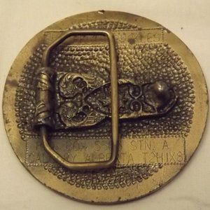 The buckle is distressed around the edge.