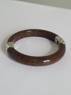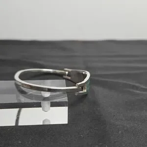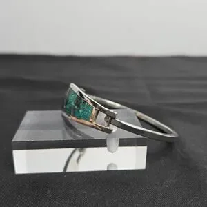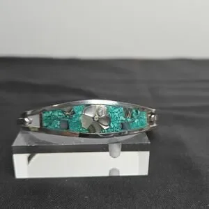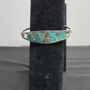 Vintage Taxco Mexico Turquoise Abalone Inlay Hinged Bracelet Silver Tone Metal