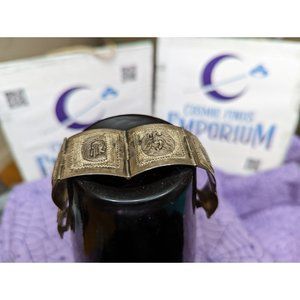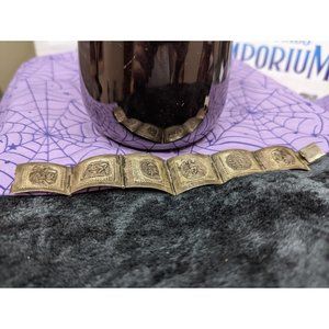 This funky and very unique sterling silver link style bracelet with embossed figural elements is straight outta the 70's. This piece is a real conversation starter and great as a gift to yourself or a loved one!