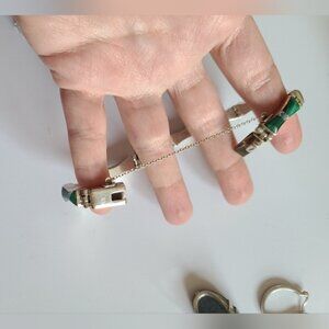 Vintage Taxco Sterling Silver Green Agate Quiet Luxury Tennis Prep Boho Western Bracelet