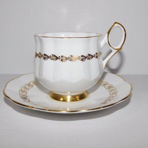 Vintage Taylor & Kent Elizabethan Bone China White Gold Tea Cup