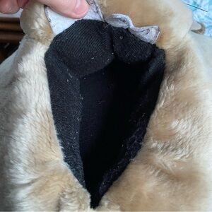 Slippers I didn’t see any holes , have some pilling around the opening and inside will remove as much as I can , they are clean and in great shape .