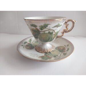 Vintage Tea Cup and Saucer Set Ucagco Ceramics Japan 1950's September Melons