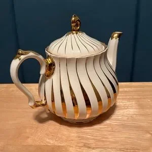 Vintage Sadler Cream and Gold Swirl Tea Pot, approximately 7”, made in England.